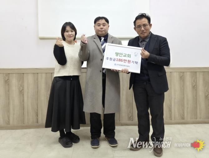 뉴스펀치 김길룡 기자 | 시흥시 군자동 행정복지센터에 지난 11월 19일 군자동 평안교회가 방문해 지역 내 복지 사각지대 해소를 위해 후원금 186만 원을 기탁했다.
