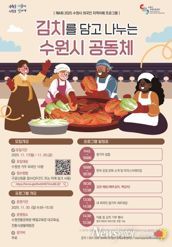 수원시국제교류센터 관계자는 “외국인 주민이 김치를 담그고 기부하며 지역사회 구성원으로서의 소속감을 키우는 데 도움이 될 것”이라며 “한국의 생활 문화와 공동체 정신을 자연스럽게 배울 수 있을 것”이라고 기대했다.