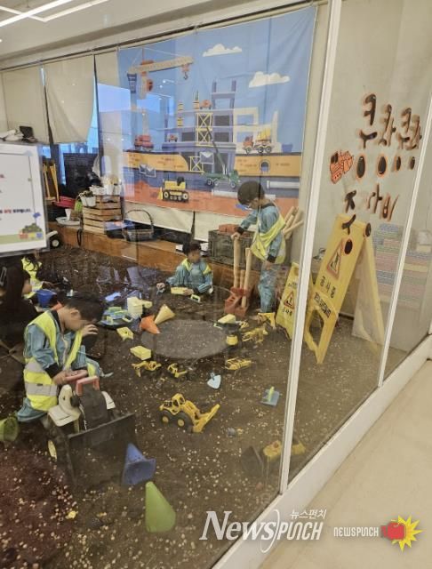 영유아들은 댜앙한 색의 물감으로 유리벽 그림 그리기, 중장비 놀이, 할로윈 체험, 실내놀이터에서의 신체활동 등 여러 프로그램에 참여하며 즐거운 시간을 보냈다.