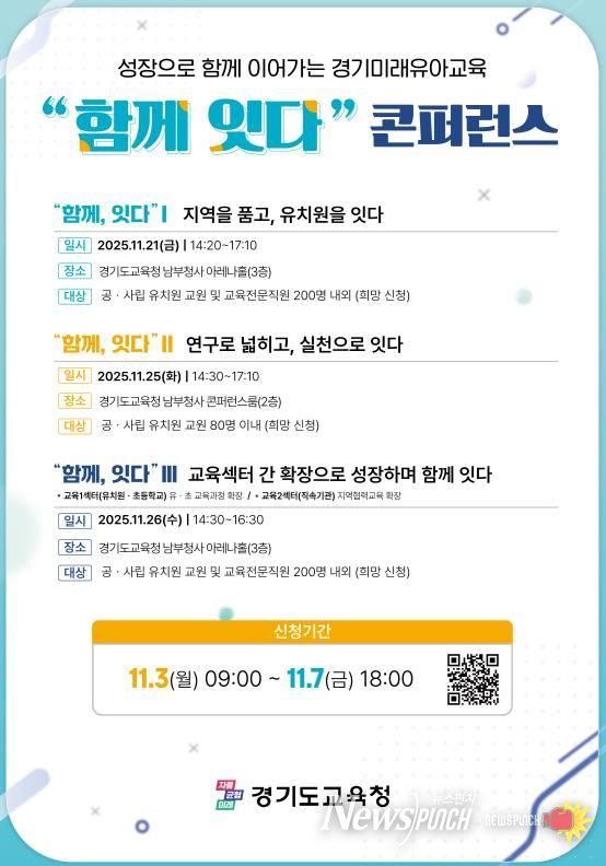 뉴스펀치 김길룡 기자 | 경기도교육청이 ‘성장으로 함께, 경기미래 유아교육과 함께 잇다’를 주제로 2025 경기미래 유아교육 콘퍼런스를 개최한다. 경기유아교육의 주요 정책 실천 사례를 중심으로 교육적 가치를 소통하고 공감하기 위해 마련한 자리다.