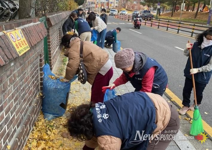 뉴스펀치 김길룡 기자 | 수원시 장안구 송죽동은 지난 20일 이면도로를 중심으로 낙엽청소 활동을 실시했다. 이번 활동은 가을철 낙엽으로 인한 보행자 안전사고와 배수로 막힘 등의 문제를 예방하고, 쾌적한 주거환경을 조성하기 위한 취지로 마련됐다.