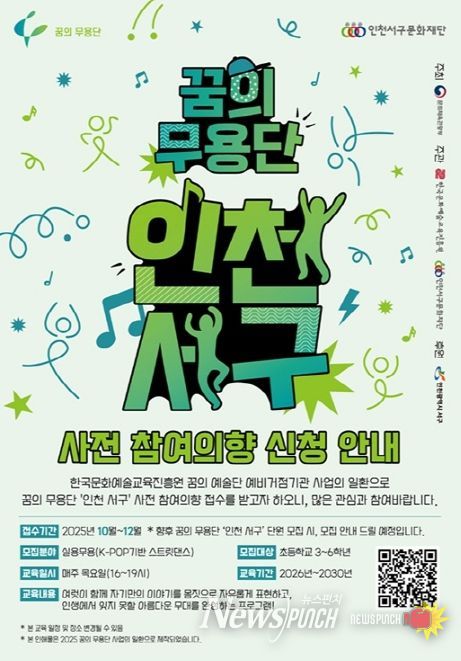 인천서구문화재단 관계자는 “‘꿈의 무용단’은 관내 아동들이 예술을 통해 자신을 발견하고, 협동과 표현의 기쁨을 배우는 소중한 기회가 될 것”이라며, “이번 사전 참여의향 접수를 계기로 더욱 많은 아동들이 무용에 관심을 가지고, 꿈의 무용단에 한 걸음 더 가까워질 수 있기를 기대한다”라고 전했다.