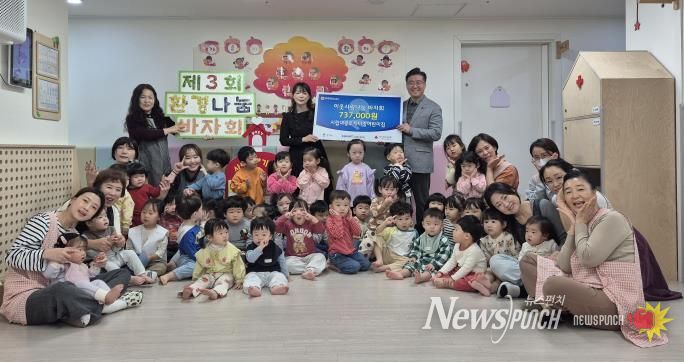 이번 성금은 원아들이 이웃과 환경을 사랑하고 재활용을 활용한 놀이를 전시하며 이웃사랑을 실천하는 제3회 ‘환경 나눔 바자회’수익금 전액으로 마련됐다.