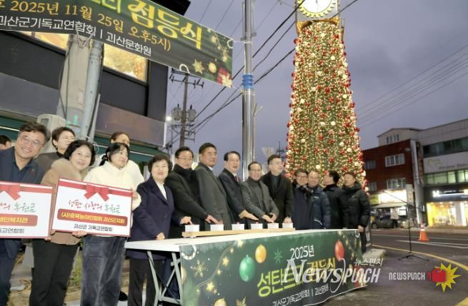 뉴스펀치 김길룡 기자 | 충북 괴산군은 지난 25일 오후 괴산읍 시계탑 앞에서 2025 괴산 성탄트리 점등식을 개최했다.