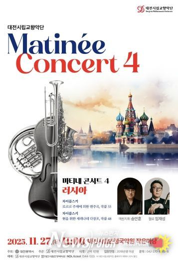 뉴스펀치 김길룡 기자 | 대전시립교향악단은 27일 목요일 오전 11시, 대전시립연정국악원 작은마당에서 2025년 마지막 마티네 콘서트 ‘러시아’를 선보인다.