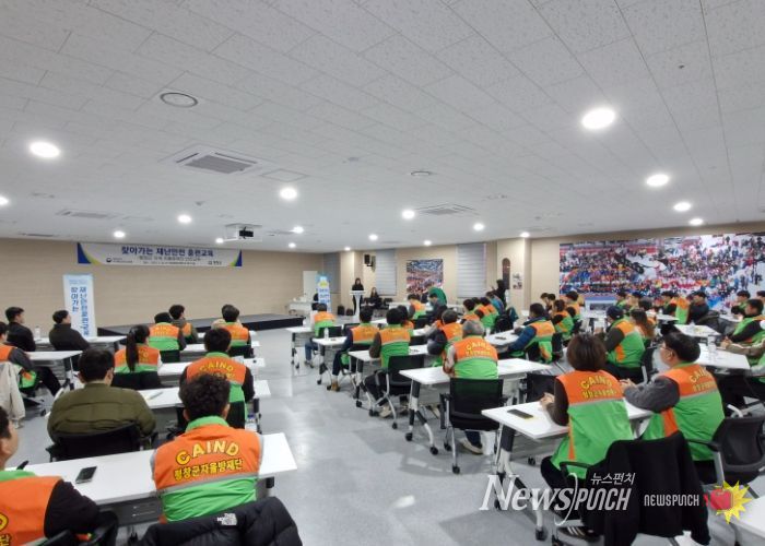 뉴스펀치 김길룡 기자 | 평창군은 지난 26일 평창군 지역 자율 방재단 50명을 대상으로 평창올림픽플라자 레거시홀에서 ‘찾아가는 재난안전교육’을 실시했다.