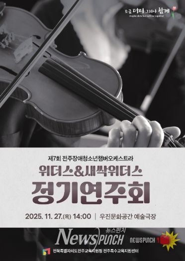 뉴스펀치 김길룡 기자 | 전북특별자치도전주교육지원청은 장애청소년의 꿈과 재능을 응원하는 제7회 장애청소년 챔버오케스트라 위더스·새싹위더스 정기연주회를 27일 우진문화공간 예술극장에서 개최했다.