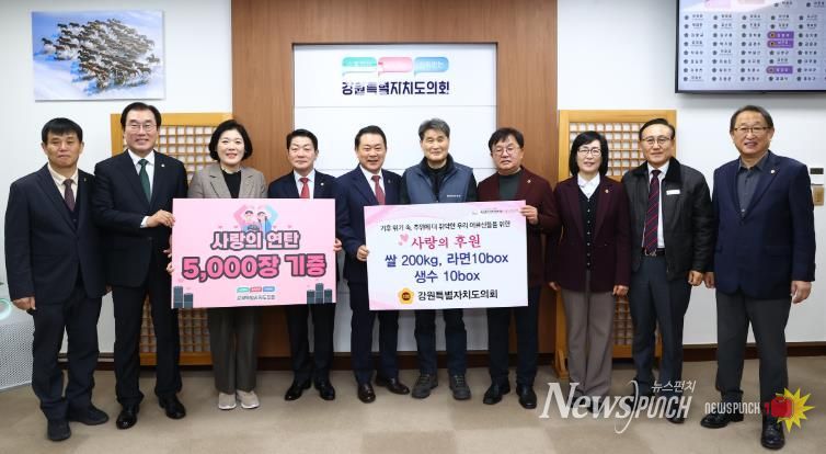 뉴스펀치 김길룡 기자 | 강원특별자치도의회는 11월27일 어려운 이웃들이 따뜻한 겨울을 보낼 수 있도록 지원하기 위해 ‘2025년 사랑의 연탄기부 증정식’을 도의회에서 개최 했다.