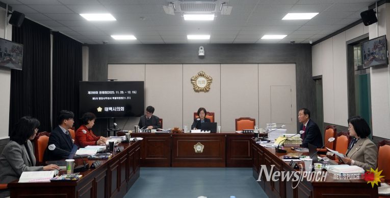 뉴스펀치 김길룡 기자 | 태백시의회는 27일 제288회 태백시의회 제2차 정례회 제5차 행정사무감사특별위원회(위원장 최미영)를 개최했습니다.