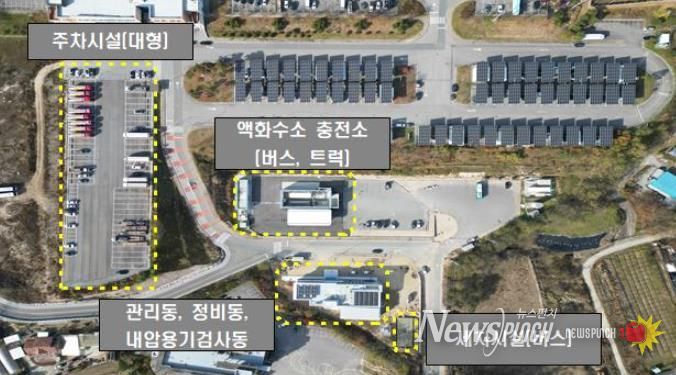 ‘수소교통복합기지’는 하루 최대 100대의 수소 버스·트럭 충전이 가능한 2,000㎏ 규모의 액화수소 충전소 4대를 중심으로 △정비시설 △세차시설 △내압용기 검사소 △화물차 주차장 확장 △복합관리동 등 수소차 운행에 필요한 기능을 한 곳에 모아 구축한 시설이다.