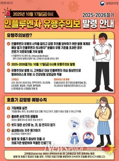 뉴스펀치 김길룡 기자 | 철원군은 최근 예년보다 빠른 속도로 인플루엔자 환자가 증가함에 따라, 고위험군의 인플루엔자 예방접종과 예방수칙 준수를 강화할 것을 당부했다.