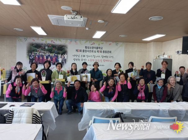 뉴스펀치 김길룡 기자 | 횡성군은 성인 문해 학습장인 횡성소망이룸학교의 제3회 졸업사은회 및 제1회 총동문회를 28일 평생학습관 5층 다목적강당에서 개최했다.