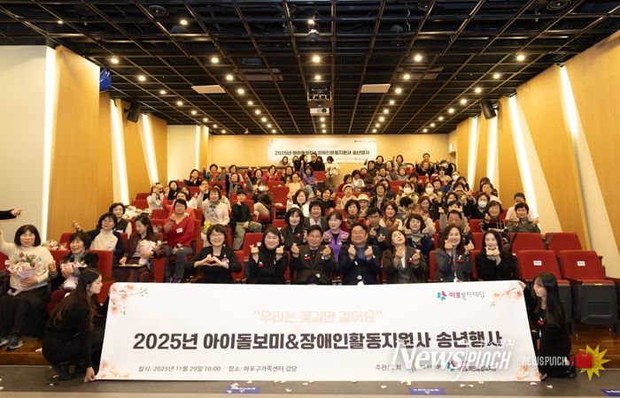 뉴스펀치 김완규 기자 | 박강수 마포구청장은 11월 29일 오전 10시, 마포구가족센터 지하 1층 강당에서 마포구가족센터와 마포장애인종합복지관 주최·주관으로 열린‘2025년 아이돌보미·장애인활동지원사 연말 송년행사’에 참석했다.