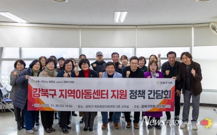 뉴스펀치 김완규 기자 | 강북구의회 유인애 의원(번1·2동, 수유2·3동)이 지난 26일, 강북구 육아종합지원센터 3층 교육실에서 ‘강북구 지역아동센터 지원 정책 간담회’를 개최하고, 지역아동센터의 운영 현황과 애로사항을 청취하는 자리를 가졌다.