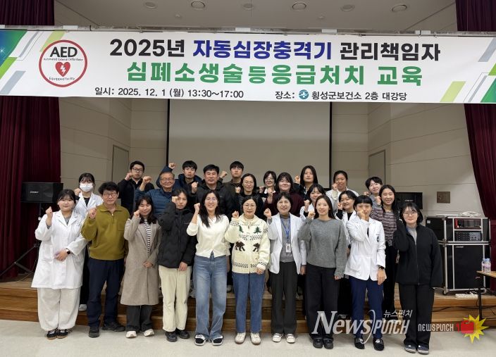 뉴스펀치 김길룡 기자 | 횡성군은 12월 1일 자동심장충격기(AED) 설치기관 관리책임자 및 직원 50여 명을 대상으로 심폐소생술(CPR) 및 응급처치 교육을 실시했다.