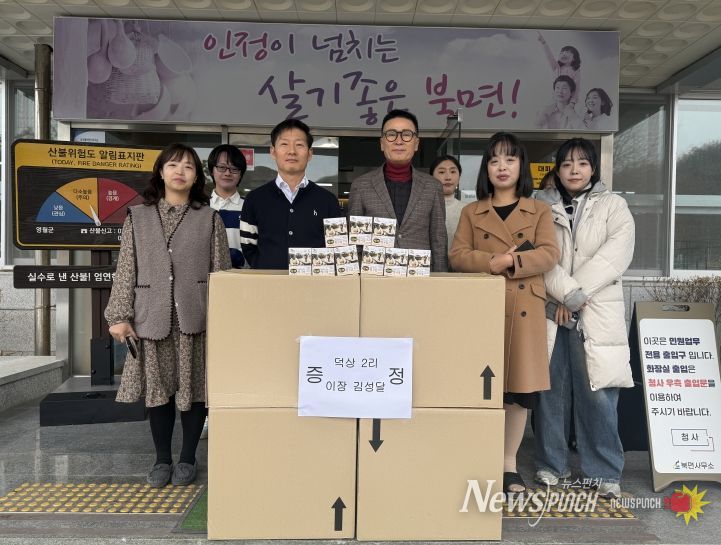 뉴스펀치 김길룡 기자 | 북면 산속의 친구 (대표: 덕상2리 이장 김성달)은 지역 어르신들의 건강한 겨울나기를 지원하기 위해 12월 2일 북면사무소를 방문하여 400만 원 상당의 청국장 키트 400여 개를 기부했다.