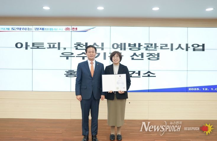 뉴스펀치 김길룡 기자 | 홍천군보건소는 2025년 아토피, 천식 예방관리사업 추진 성과를 인정받아 질병관리청장 표창을 수상했다고 밝혔다.