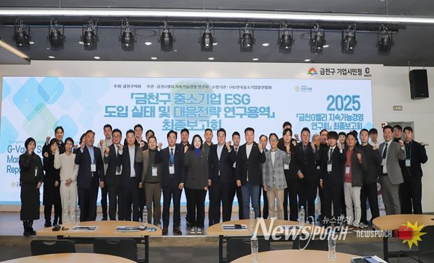 뉴스펀치 김완규 기자 | 서울특별시 금천구의회 의원연구단체인‘금천G밸리 지속가능경영 연구회’는 지난 12월 1일 금천G밸리 기업시민청에서 '금천구 중소기업 ESG 도입 실태 및 대응전략 연구용역' 최종보고회를 개최했다.