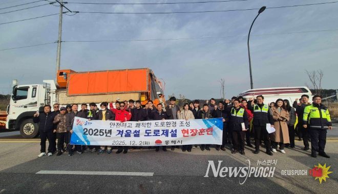 뉴스펀치 김길룡 기자 | 동해시는 겨울철 폭설에 대비해 지난 2일 북평제2일반산업단지 내 도로에서 유관기관과 합동으로 겨울철 도로제설 훈련을 실시했다고 밝혔다.