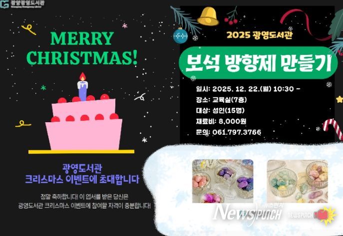 뉴스펀치 김길룡 기자 | 광양광영도서관은 도서관 이용 활성화와 시민들의 문화 향유 기회 확대를 위해 12월 1일부터 28일까지 ‘2025 크리스마스 특별 행사’를 운영한다고 밝혔다.