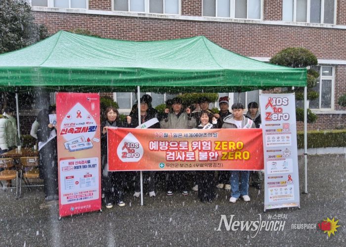 뉴스펀치 김길룡 기자 | 전남 무안군은 제38회 세계 에이즈의 날(12월 1일)을 맞아 관내 대학생들의 건강증진과 에이즈에 대한 올바른 인식 확산을 위해 지난 12월 2일부터 이틀간 관내 대학교에서 집중 예방 캠페인을 진행했다.