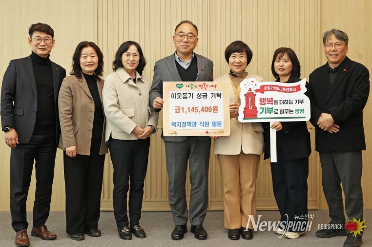 뉴스펀치 김길룡 기자 | 양양군은 지난 12월 5일 양양군청 복지정책과 직원들이 ‘희망2026 나눔캠페인’의 취지에 동참하며 성금 1,145,400원을 기탁했다고 밝혔다.