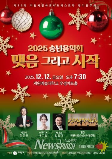 뉴스펀치 김길룡 기자 | 의왕시는 12월 12일 오후 7시 30분, 계원예술대학교 우경아트홀에서 ‘2025 송년음악회–맺음 그리고 시작’을 개최한다.