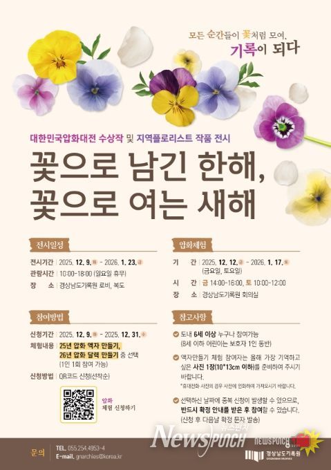 김일수 경상남도기록원장은 “도민이 직접 참여해 만든 압화 작품은 개인의 기억을 담는 동시에, 지역의 기록문화로 이어지는 소중한 자산이 된다”라며, “이번 전시와 체험이 도민들에게 기록의 가치와 즐거움을 새롭게 느끼는 계기가 되길 바란다”라고 말했다.