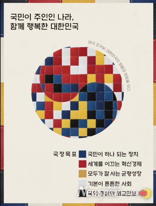디자인 부문 대상은 배세환 디자이너의 ‘태극 조각보, 대한민국의 화합과 희망을 잇다’가 차지했다. 다섯 가지 국정목표를 상징하는 조각보들을 바느질 선으로 견고하게 이어 태극으로 표현한 작품은 한국적이면서도 세련된 이미지를 보여준다. 최우수상은 국민 중심의 가치관을 열쇠라는 상징으로 표현한 작품(수상자 장성화)이 수상했다. 향후 전국 관공서에 게시될 국가비전·국정목표 디자인은 이번 공모전 우수작을 활용해 확정할 예정이다.