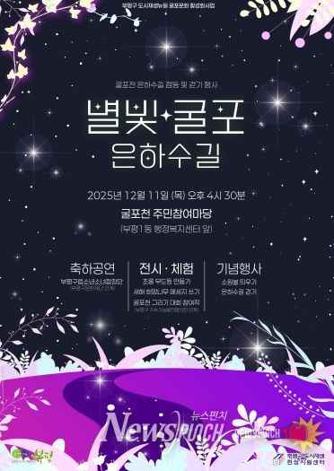 한편 ‘별빛굴포 은하수길’ 행사는 가족 단위 주민부터 남녀노소 누구나 자유롭게 참여할 수 있는 열린 행사로, 굴포천을 중심으로 이웃과 함께 어울리며 연말의 정취를 나누는 시간이 될 전망이다.