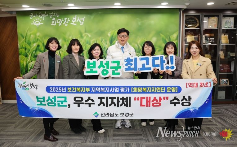뉴스펀치 김길룡 기자 | 보성군은 지난 7일 보건복지부가 실시한 2025년 지역복지사업 평가 ‘희망복지지원단 운영’ 분야에서 전국 우수 지방자치단체로 선정돼 ‘대상’을 수상했다고 밝혔다.