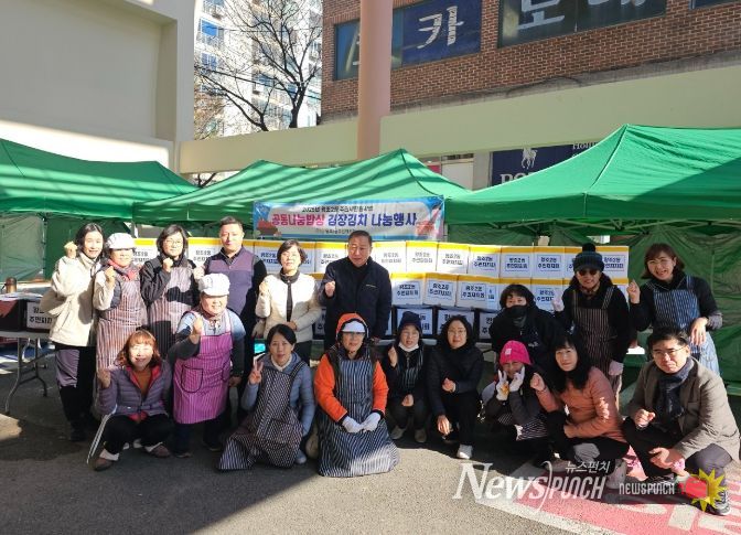 뉴스펀치 김길룡 기자 | 순천시 왕조2동 주민자치회(회장 선학규)는 지난 5일 행정복지센터에서 관내 취약계층 겨울나기를 위한 ‘공동밥상 김장 나눔 행사’를 개최했다.