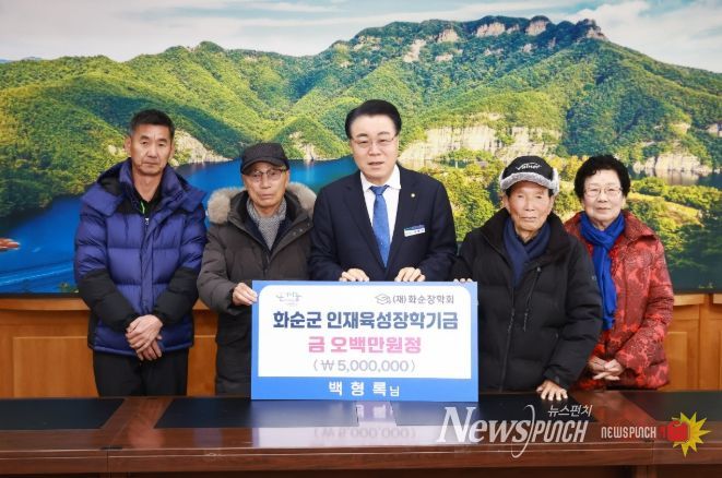 뉴스펀치 김길룡 기자 | 화순군은 지난 5일 도암면 출신 백형록 씨가 지역인재 육성과 학업 지원을 위해 화순장학회에 장학금 500만 원을 재기탁했다고 밝혔다.