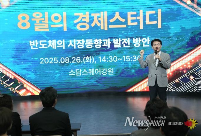 뉴스펀치 김길룡 기자 | 강원특별자치도는 12월 8일 한국은행에서 강원도로 파견된 김대용 경제정책보좌관이 2026년 경제전망을 주제로 강의하며, 2025년도 강원경제스터디 마지막 강좌를 개최했다고 밝혔다.