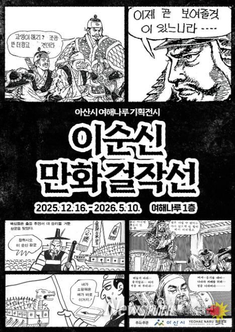 아산시 여해나루 ‘이순신만화걸작선’은 충무공 이순신 순국 제427주기를 기념하는 특별전으로 이번 달 16일부터 2026년 5월 10일까지 여해나루 1층 미디어아트홀에서 개최된다.