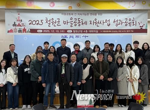 뉴스펀치 김길룡 기자 | 철원군은 지난 12월 10일 철원군청 4층 대회의실에서 '2025년 철원군 마을공동체 성과공유회'를 열어 한 해 동안 추진된 마을공동체 활동의 성과를 주민들과 함께 공유하는 시간을 가졌다.