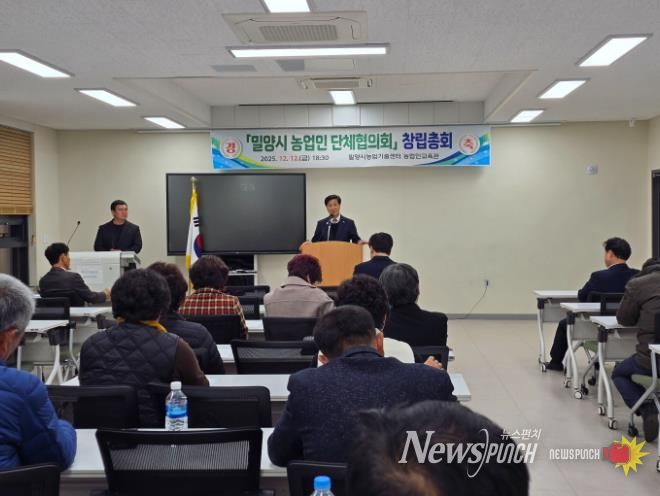 뉴스펀치 김길룡 기자 | 경남 밀양시는 지난 12일 농업기술센터 농업인교육관에서 지역 농업의 지속 가능한 발전을 위해 농업인 9개 단체가 참여해 상호 협력을 결의하는 ‘밀양시 농업인 단체협의회 창립총회’를 개최했다.