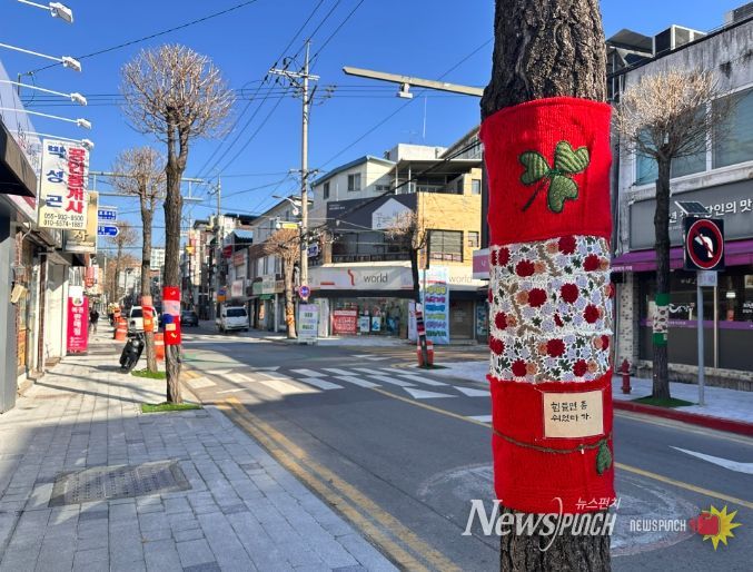 가로수를 감싸는 니팅과 보호대는 단순한 미적 연출을 넘어 기능적인 효과까지 고려한 것이 특징이다.