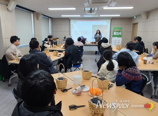 먼저, 창원센터는 12월 4일 센터 교육실에서 졸업식을 진행하며 ‘우리가 꽃 피울 시간’을 주제로 꽃바구니 만들기 체험을 가졌다.