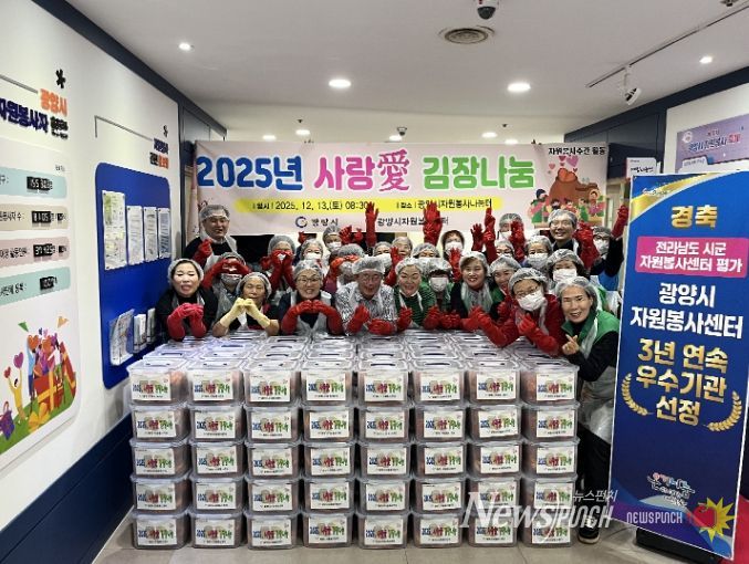 뉴스펀치 김길룡 기자 | 광양시자원봉사센터는 지난 13일 광양시자원봉사나눔터에서 지역사회를 위한 ‘사랑愛 김장 나눔’ 자원봉사 활동을 진행했다고 밝혔다.