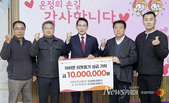 뉴스펀치 김길룡 기자 | 충남 서산시는 15일 생활폐기물 수집·운반 대행업체인 서청환경산업㈜과 오산환경㈜이 어려운 이웃돕기 성금 총 1,000만 원을 기탁했다고 밝혔다.