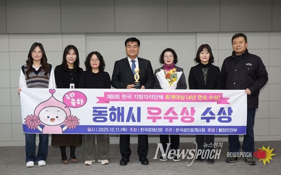 이번 수상은 제5회 우수상, 제6회 장려상, 제7회 우수상에 이어 4년 연속 수상으로, 동해시의 회계 투명성과 재정운용 역량이 지속적으로 높은 평가를 받고 있음을 다시 한번 입증했다.