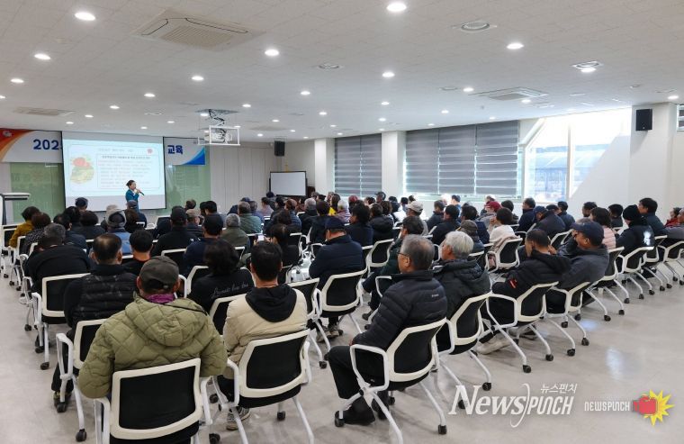 뉴스펀치 김길룡 기자 | 진주시는 과수원 겨울전정 시기(1~2월)를 앞두고 15일 농업기술센터 교육장에서 농업인 120명을 대상으로 농업분야 중대재해를 예방하고 농업인의 안전관리 역량을 강화하기 위한 ‘농작업 안전재해 예방교육’을 실시했다.