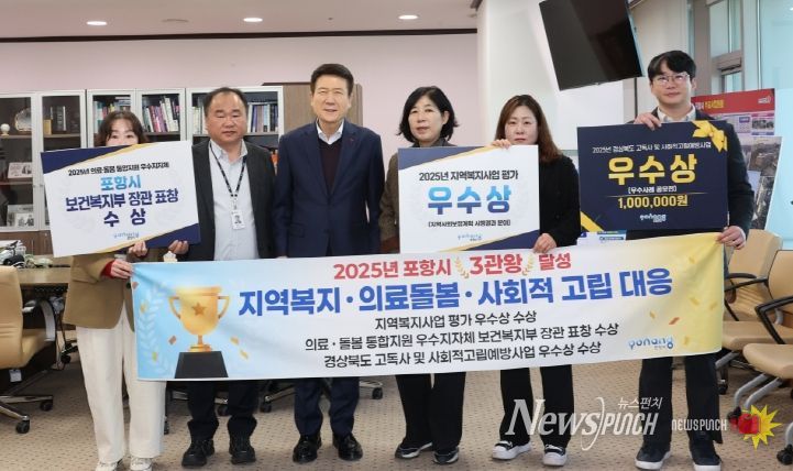 뉴스펀치 김길룡 기자 | 포항시가 지역복지와 의료·돌봄, 고독사 예방 등 복지 전반의 성과를 인정받아 보건복지부와 경상북도로부터 각각 기관 표창을 수상했다.