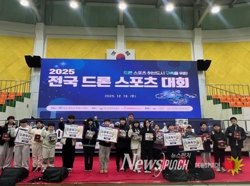 뉴스펀치 김길룡 기자 | 경상북도의성교육지원청은 지난 12월 13일 의성실내체육관에서 개최된 '2025 전국 드론 스포츠대회'에 의성 관내 초등학생들이 드론축구 종목에 팀 단위로 참가해 기량을 겨뤘다고 밝혔다.