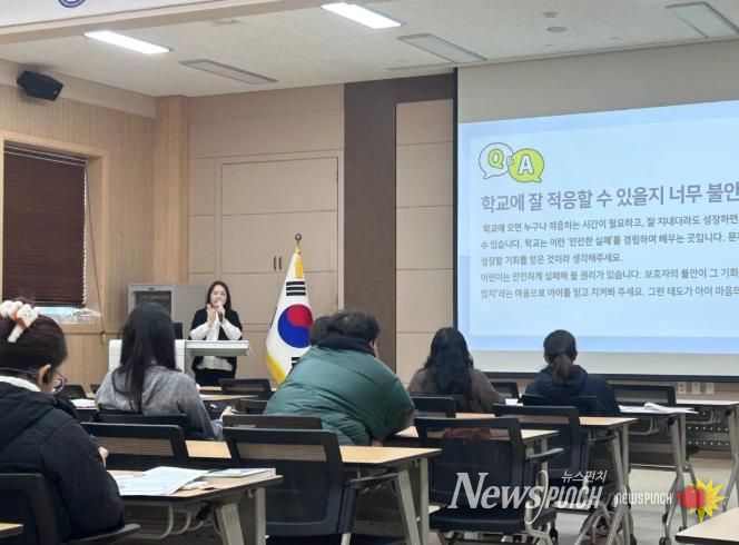 뉴스펀치 김길룡 기자 | 충청남도서산교육지원청은 특수교육대상학생의 초등학교 전환을 지원하기 위해 지난 9일과 15일 이틀에 걸쳐 관내 초등학교 특수학급 및 특수학교에 입학 예정 특수교육대상학생을 둔 보호자들을 대상으로 '초등학교 입학적응 보호자 연수'를 실시했다.