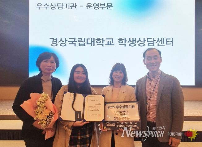 뉴스펀치 김길룡 기자 | 경상국립대학교(GNU·총장 권진회) 학생상담센터(센터장 김장회 교육학과 교수)가 전국대학교학생상담센터협의회(전상협)가 주관한 ‘2025년 우수상담기관’에 선정됐다.