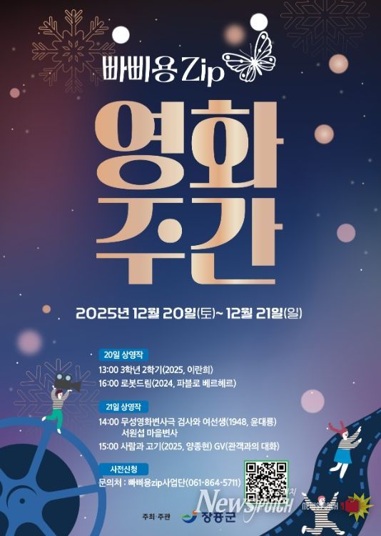 뉴스펀치 김길룡 기자 | 장흥 빠삐용Zip(옛 장흥교도소)에서 오는 12월 20일과 21일 이틀간 ‘영화주간’ 영화 상영회를 개최한다.
