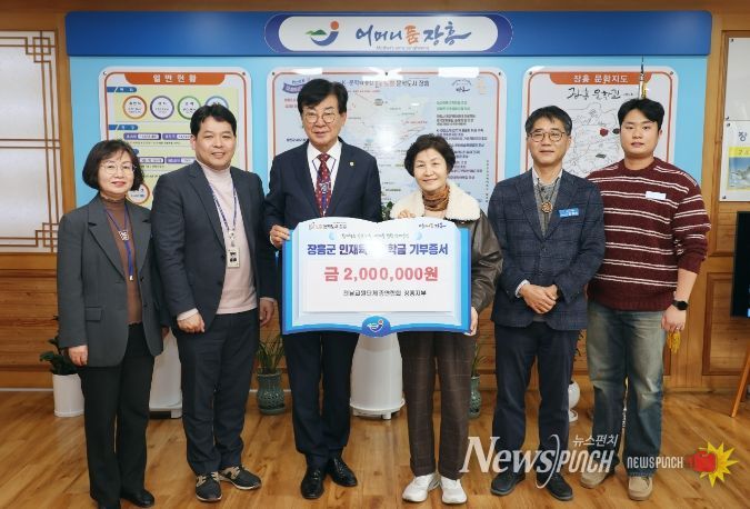뉴스펀치 김길룡 기자 | (재)장흥군인재육성장학회는 11일 전남교원단체총연합회 장흥지부에서 지역 교육 발전을 위해 인재육성장학기금 200만원을 기탁했다고 밝혔다.