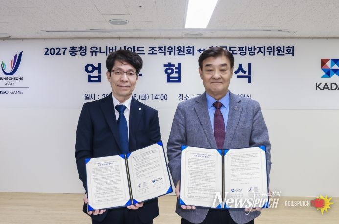뉴스펀치 박세훈 기자 | 2027 충청 유니버시아드대회 조직위원회는 16일 대회의실에서 한국도핑방지위원회(KADA)와 ‘도핑 관리 업무 협약’을 체결했다고 밝혔다.